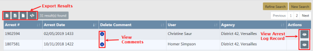 | 3. | You can export the search results to various file types, view the comments that were entered at the time the arrest record was deleted, and view the deleted log entry. |