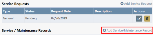4. Page down to the Service/Maintenance Records section of the Edit Fleet Vehicle window.