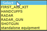 The fields with -Select- supply a specific list from which to choose. For example, to search for the Equipment Type Handcuffs, click on the and a list will appear, then click Handcuffs from the list.