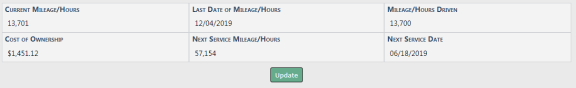 | • | The Current Mileage/Hours and Miles/Hours Used fields are both read-only. |