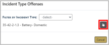 Click the link to open a dialog box that lists the offense(s) from which to choose. You can filter by Incident Type by selecting from the list. Only one offense appears in the below example for illustration purposes.