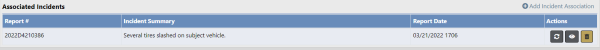 under the Actions heading, click the Add Call for Service link to search for and associate an existing call for service record to the incident, or click the delete icon