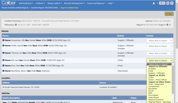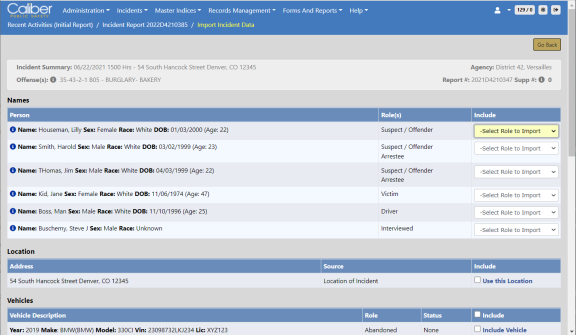 Click Save to create the Criminal Complaints and associate them to the Incident Report supplement automatically.