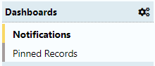 Pinned Records and Notifications appear in the Main Area. You have the option to change the display order or remove content; perhaps you prefer Notifications to appear before Pinned Records, or you don't want Pinned Records to appear on your Home Page.