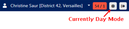 Click on the Night/Day mode icon on the User Ribbon to toggle between the two settings. When Day Mode is active, a sun-like image appears as the icon, and a moon for Night Mode.