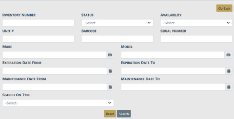 From the Officer Inventory Management page, select Dispose Consumable Items to open Inventory Search - Dispose.