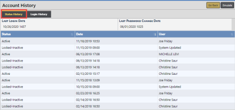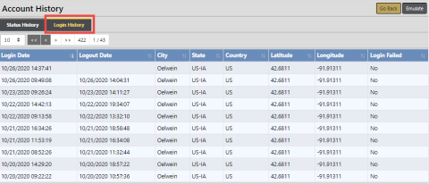 There are two tabs: Status History and Login History.
