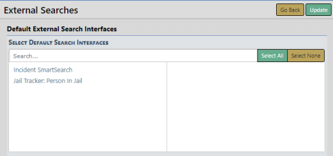 Caliber Public Safety Online RMS allows users to set their default external search interfaces.