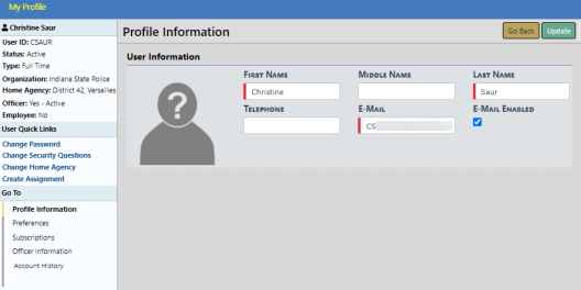 Note: By default, users cannot update their profiles, Officer Information, or Employee Information unless they have been granted permissions to do so.
