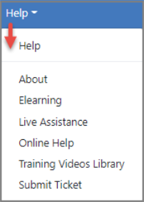 Click Help to display a drop-down menu. The menu options vary by agency and permissions.