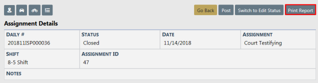 After you have searched and selected the Log you wish to print, click on the Print Report button on the View Log screen.