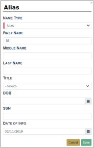| • | Click into the Add field on the Person Detail window and select Aliases from the drop-down list. |